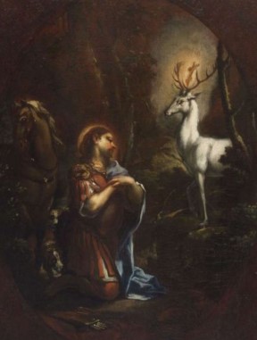 Svatý Eustach klečící před bílým jelenem, Petr Brandl, 1707 (petrbrandl.eu)